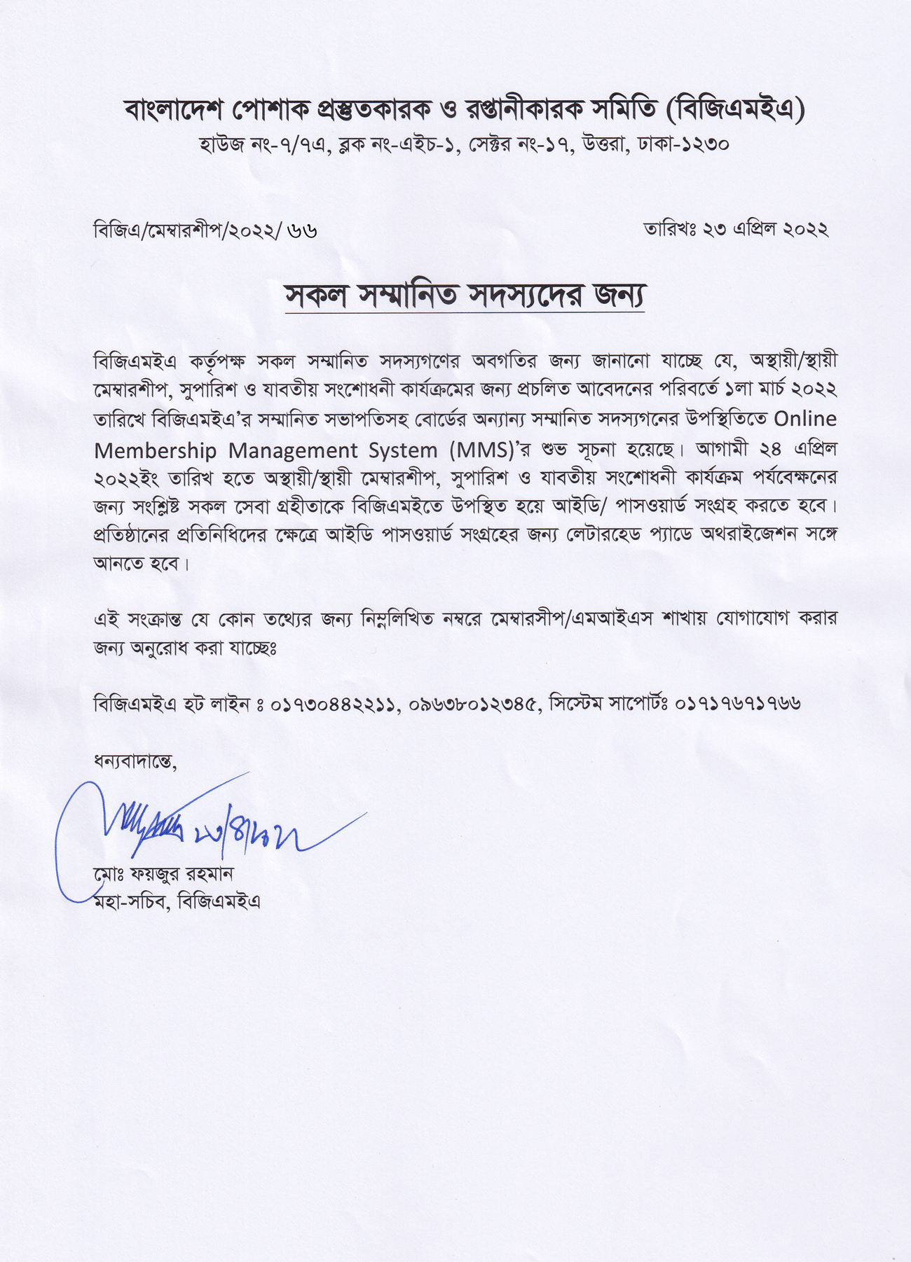 Copyright © 2020, The Bangladesh Garment Manufacturers and Exporters Association.