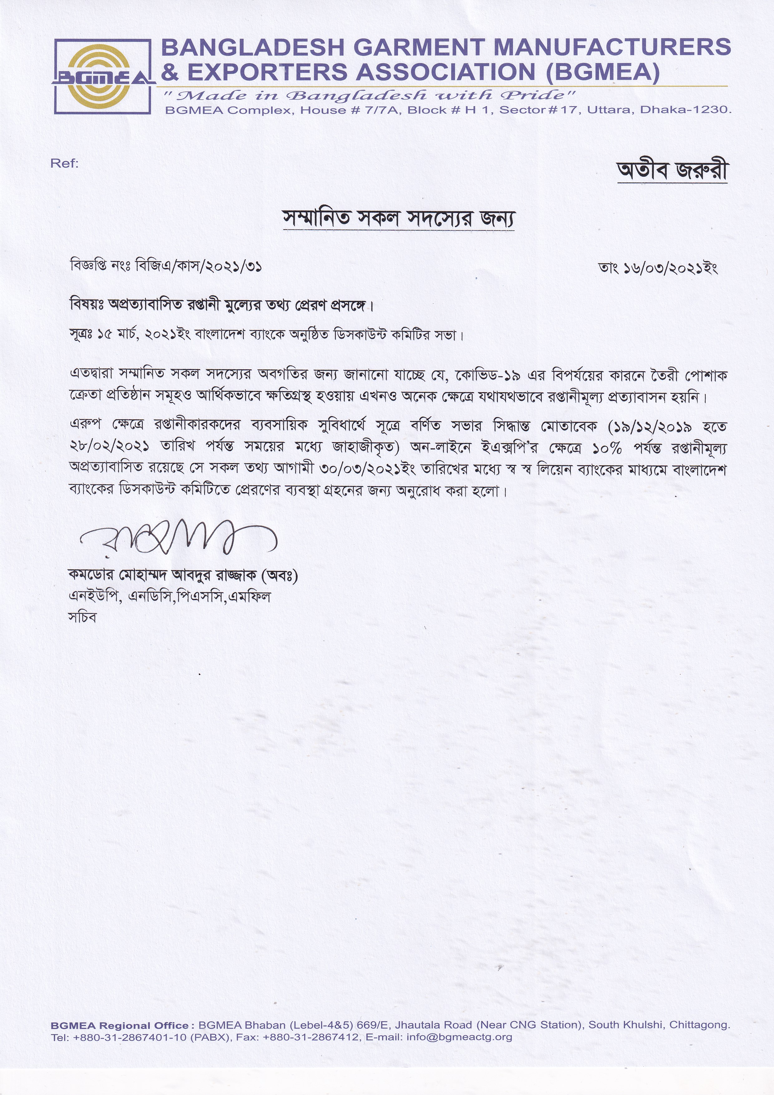 Copyright © 2020, The Bangladesh Garment Manufacturers and Exporters Association.