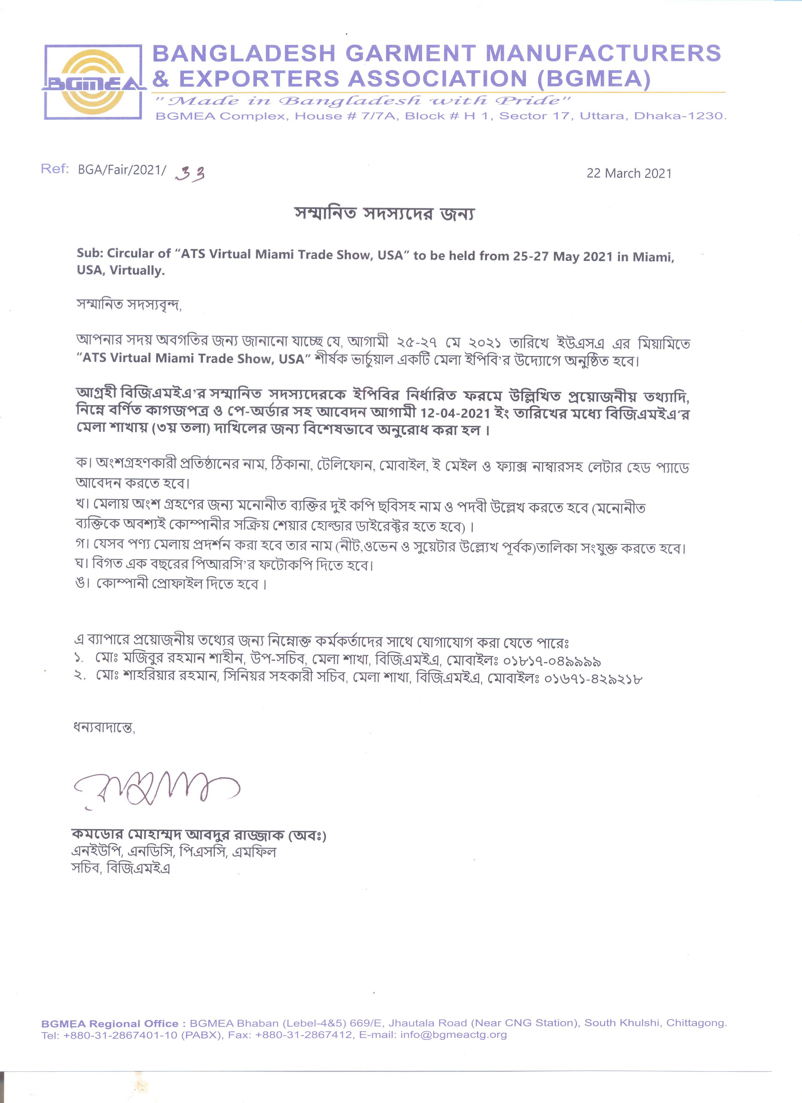 Title: | Circular of “ATS Virtual Miami Trade Show, USA” to be held from 25-27 May 2021 in Miami, USA,Virtually. |