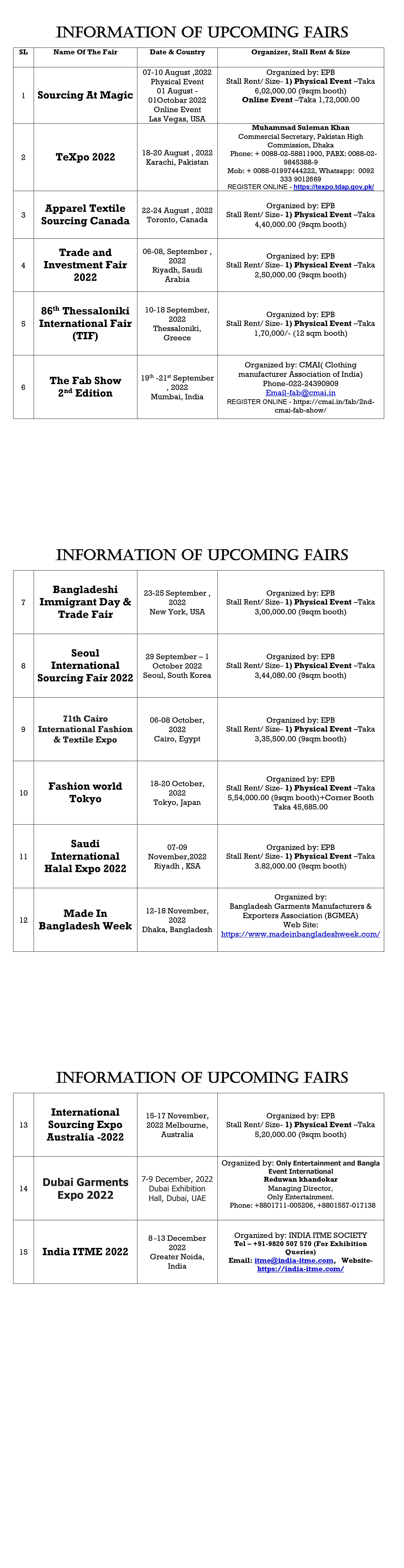 Information on International Trade Fair