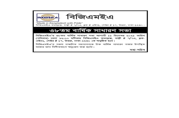 Notice of the 38th Annual General Meeting (AGM) of BGMEA