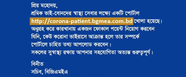 BGMEA has opened a portal on health safety of garment workers. All member factories of...