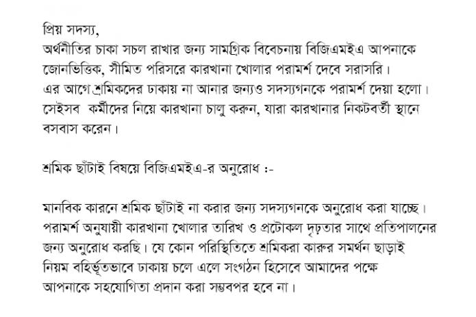 Regarding the report published by the Dhaka Tribune dated 7 April 2020 titled “Gazipur apparel...