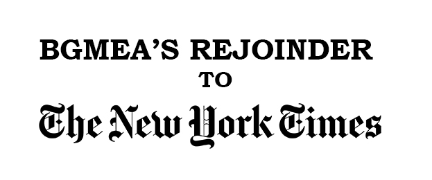 BGMEA has sent a rejoinder to the New York Times expressing its disagreement over several...