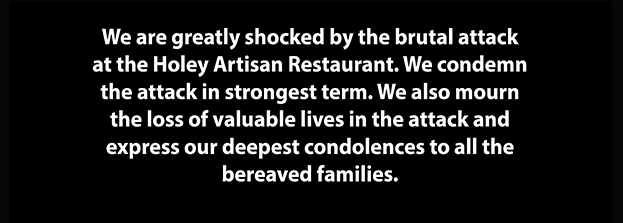 We are greatly shocked by the brutal attack at the Holey Artisan Restaurant. We condemn...