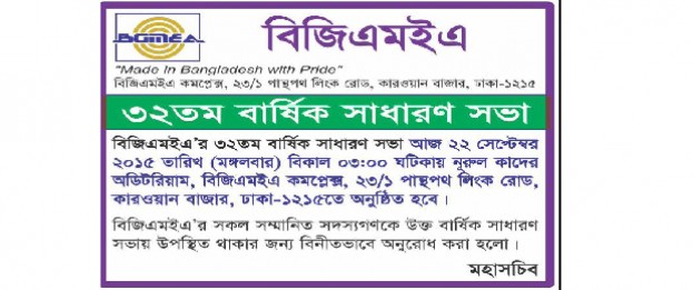 The 32nd Annual General Meeting of the Bangladesh Garment Manufacturers and Exporters Association (BGMEA) will...
