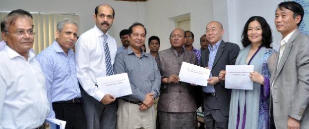 The logo of the DBBL Asian Senior Men’s Central Zone Volleyball Championship 2015 was ceremonially...