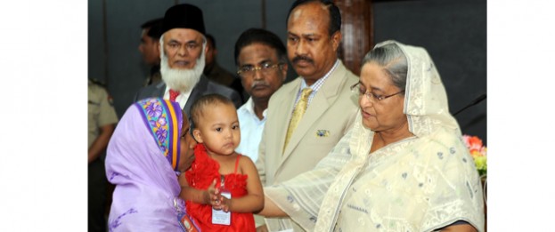 Prime Minister hands over cheques to families of RMG victims