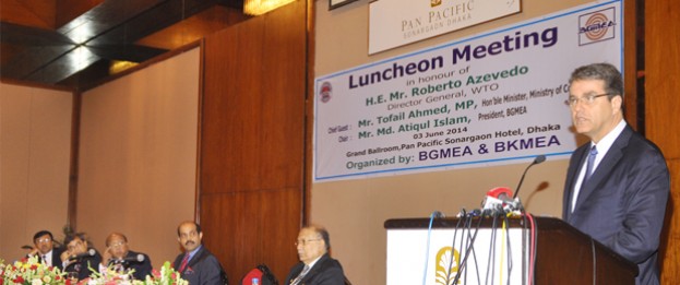 Roberto Azevedo, director general of World Trade Organisation, speaking at a meeting at Sonargaon Hotel...