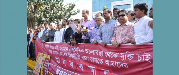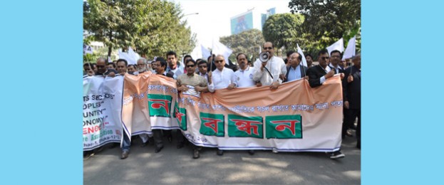A human chain has been formed today in front of BGMEA Complex in the capital...